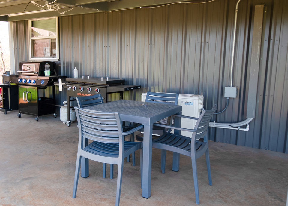 Gas griddle, gas grill and sink on the patio for outdoor cooking